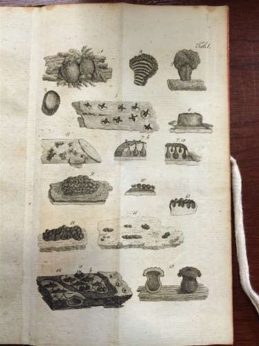 An impoverished recluse who never held an official or academic position, Persoon nevertheless managed to build on a good education in Leiden and Göttingen to form a significant herbarium and scientific library on fungi (mushrooms) and to publish works that are considered the basis of modern mycology. Our copy of this classic work, the starting point for the nomenclature of several major groups (including puffballs), includes stilted plates.